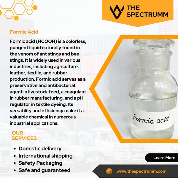 Formic acid (HCOOH) is a colorless, pungent liquid naturally found in the venom of ant stings and bee stings. It is widely used in various industries, including agriculture, leather, textile, and rubber production. Formic acid serves as a preservative and antibacterial agent in livestock feed, a coagulant in rubber manufacturing, and a pH regulator in textile dyeing. Its versatility and efficiency make it a valuable chemical in numerous industrial applications. #Import-Formic-acid-in-Germany #Best-Quality-Import-Formic-acid-in-Germany #REACH-registered-Import-Formic-acid-in-Germany #Best-Quality-REACH-registered-Import-Formic-acid-in-Germany #Import-Formic-acid-in-France #Best-Quality-Import-Formic-acid-in-France #REACH-registered-Import-Formic-acid-in-France #Best-Quality-REACH-registered-Import-Formic-acid-in-France #Import-Formic-acid-in-United-Kingdom #Best-Quality-Import-Formic-acid-in-United-Kingdom #REACH-registered-Import-Formic-acid-in-United-Kingdom #Best-Quality-REACH-registered-Import-Formic-acid-in-United-Kingdom #Import-Formic-acid-in-Italy #Best-Quality-Import-Formic-acid-in-Italy #REACH-registered-Import-Formic-acid-in-Italy #Best-Quality-REACH-registered-Import-Formic-acid-in-Italy #Import-Formic-acid-in-Spain #Best-Quality-Import-Formic-acid-in-Spain #REACH-registered-Import-Formic-acid-in-Spain #Best-Quality-REACH-registered-Import-Formic-acid-in-Spain #Import-Formic-acid-in-Netherlands #Best-Quality-Import-Formic-acid-in-Netherlands #REACH-registered-Import-Formic-acid-in-Netherlands #Best-Quality-REACH-registered-Import-Formic-acid-in-Netherlands #Import-Formic-acid-in-Belgium #Best-Quality-Import-Formic-acid-in-Belgium #REACH-registered-Import-Formic-acid-in-Belgium #Best-Quality-REACH-registered-Import-Formic-acid-in-Belgium #Import-Formic-acid-in-Poland #Best-Quality-Import-Formic-acid-in-Poland #REACH-registered-Import-Formic-acid-in-Poland #Best-Quality-REACH-registered-Import-Formic-acid-in-Poland #Import-Formic-acid-in-Austria #Best-Quality-Import-Formic-acid-in-Austria #REACH-registered-Import-Formic-acid-in-Austria #Best-Quality-REACH-registered-Import-Formic-acid-in-Austria #Import-Formic-acid-in-Sweden #Best-Quality-Import-Formic-acid-in-Sweden #REACH-registered-Import-Formic-acid-in-Sweden #Best-Quality-REACH-registered-Import-Formic-acid-in-Sweden